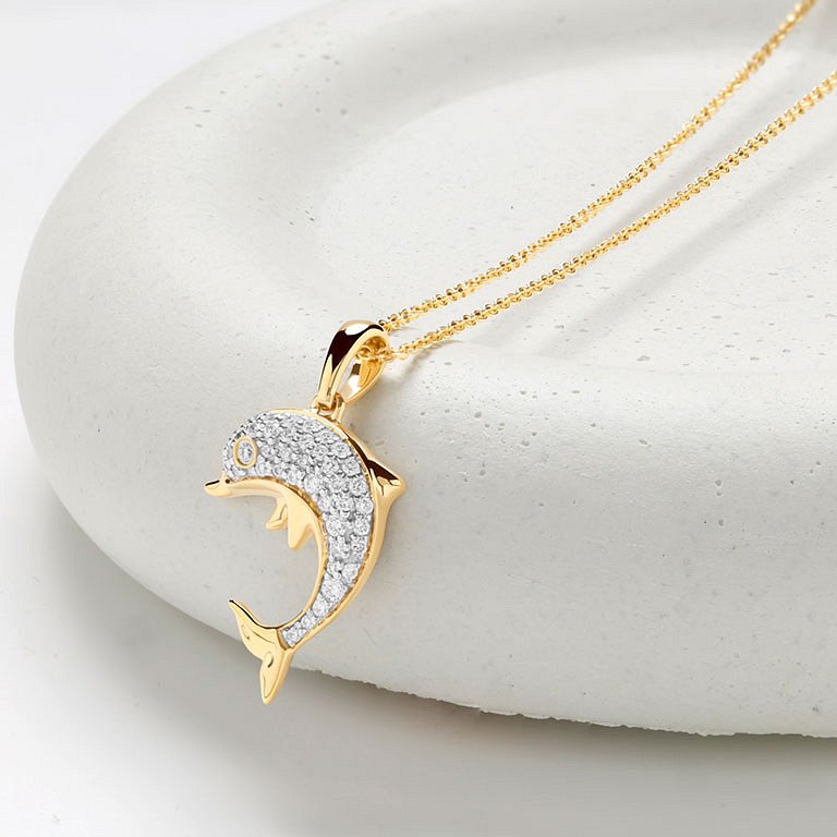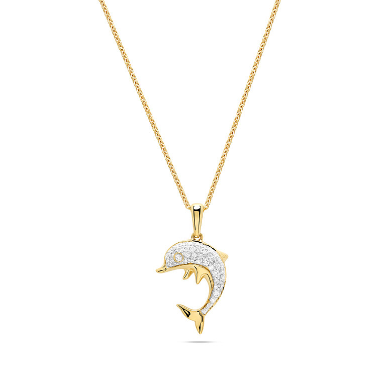 14kt Gold Lab Diamond Dolphin Necklace