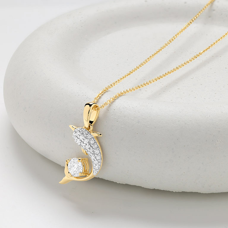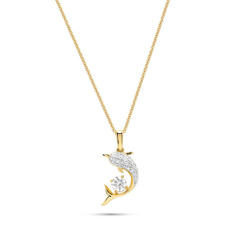 14kt Gold Lab Diamond Dolphin Necklace