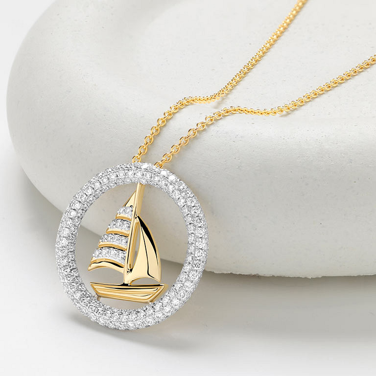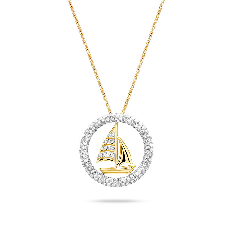 14kt Gold Lab Diamond Sail Boat Necklace