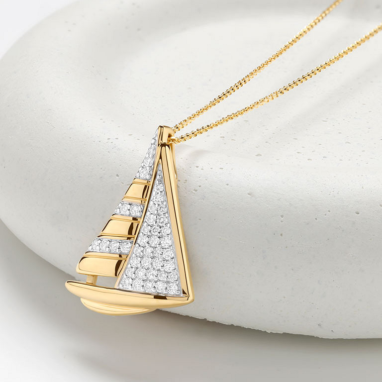 14kt Gold Lab Diamond Sailing Boat Necklace