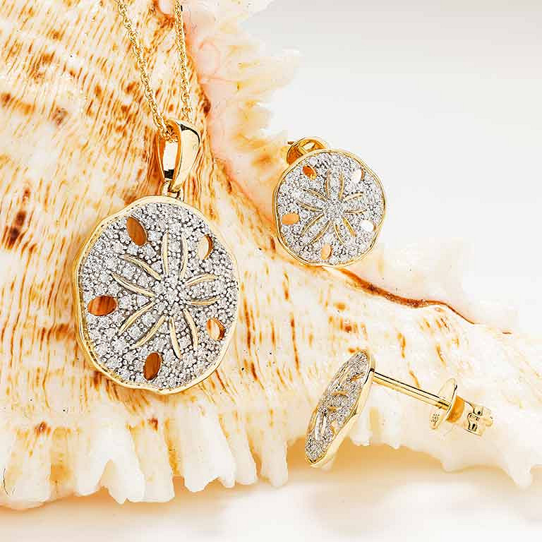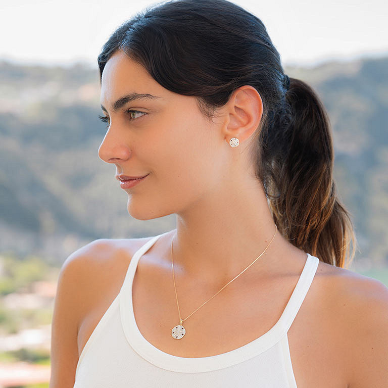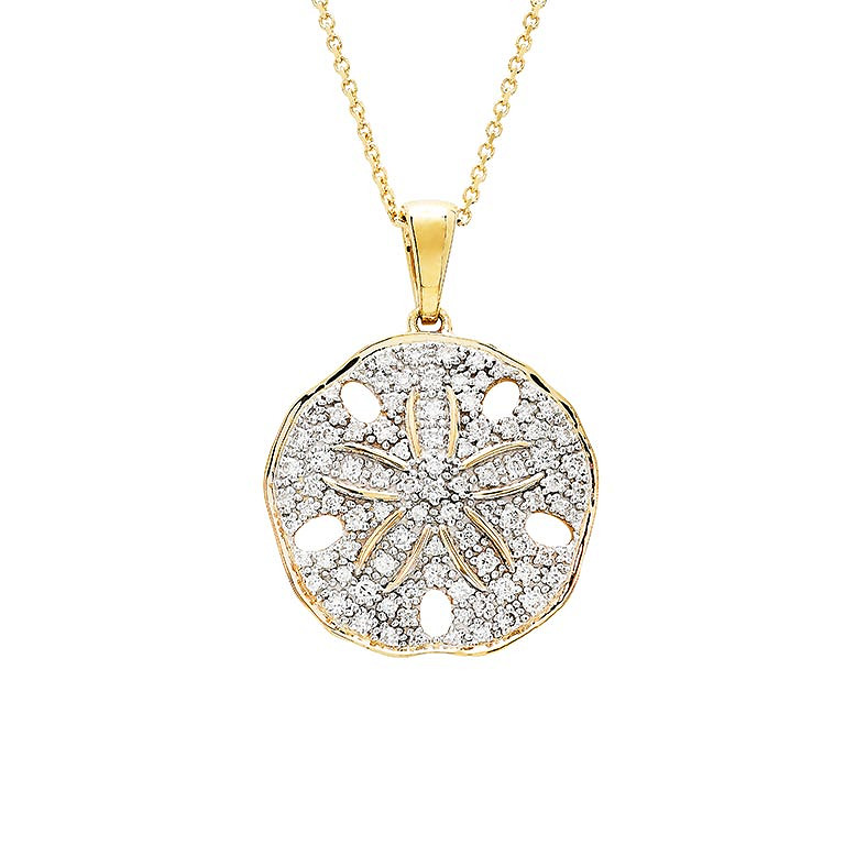 14kt Gold Lab Diamond set Sand Dollar Necklace