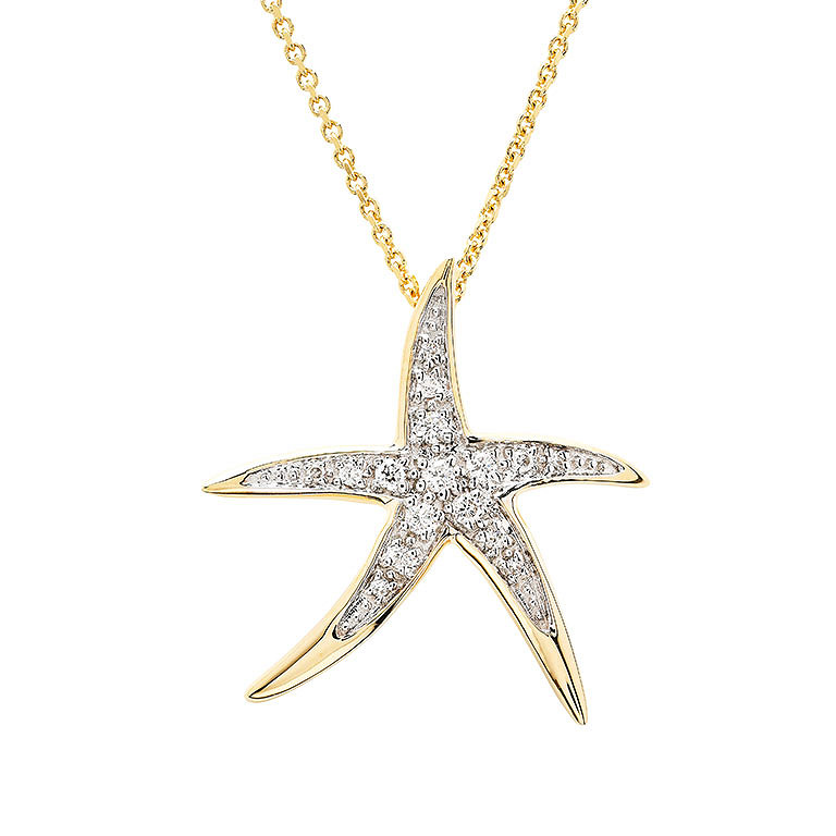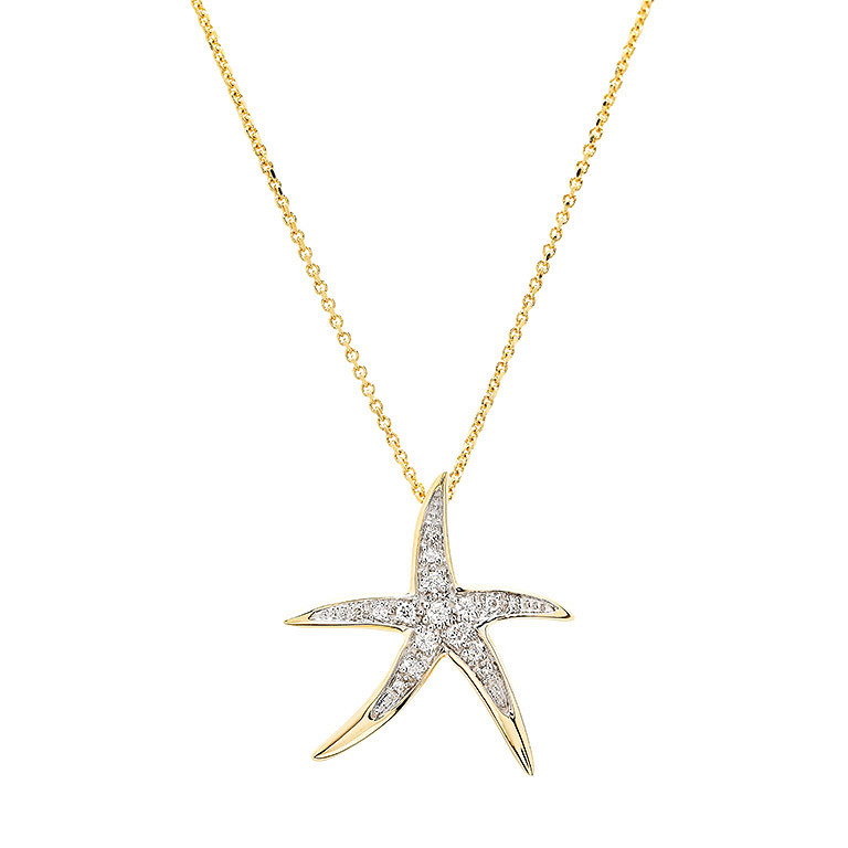 14kt Gold Lab Diamond set Star Fish Necklace