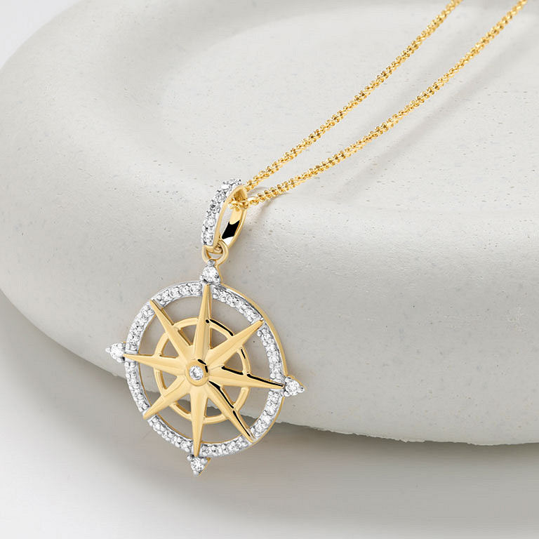 14kt Gold Lab Diamond Ship Wheel Necklace