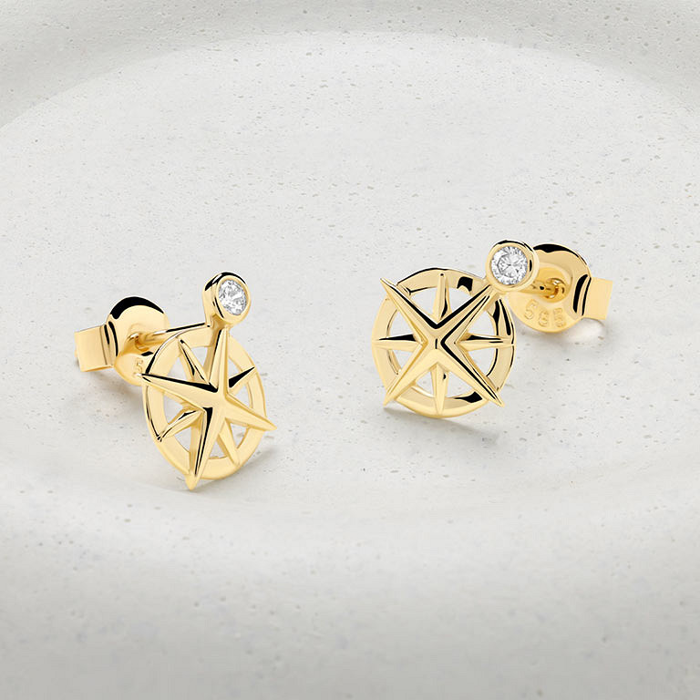 14kt Gold Lab Diamond Ships Wheel Earrings