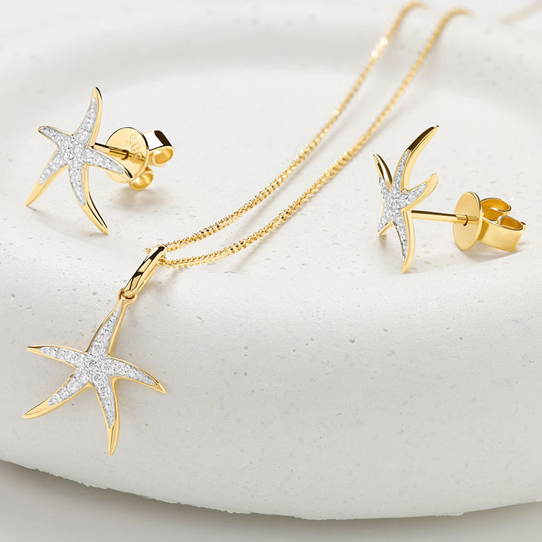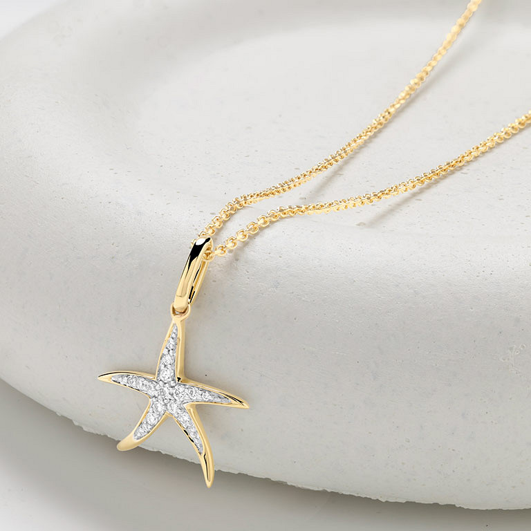14kt Gold Lab Diamond Star Fish Necklace