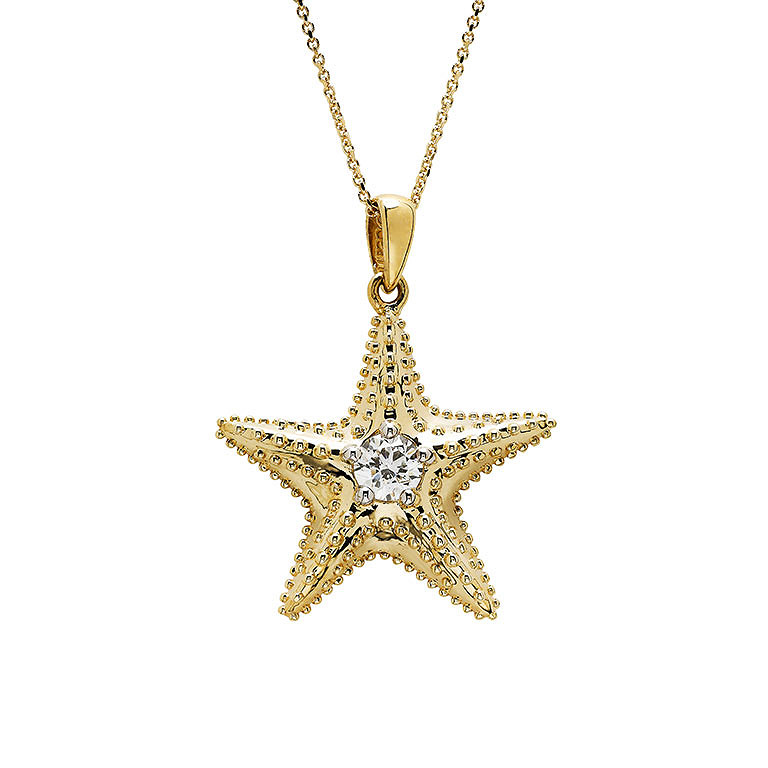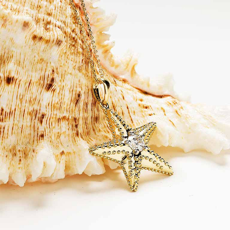 14kt Gold Lab Diamond Star Fish Necklace