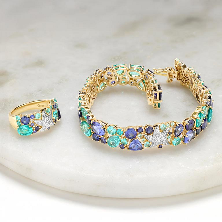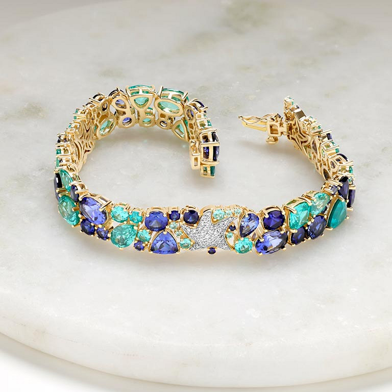 14kt Gold Lab Pariba Sapphire and Diamond Starfish Bracelet