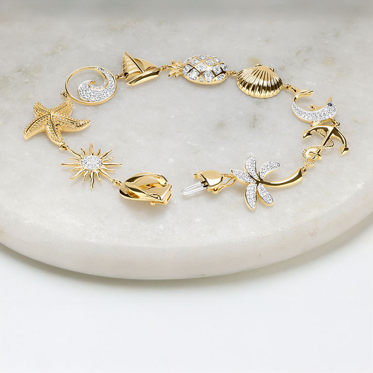 14kt Gold Lab Sapphire and Diamond Multi Charm Bracelet