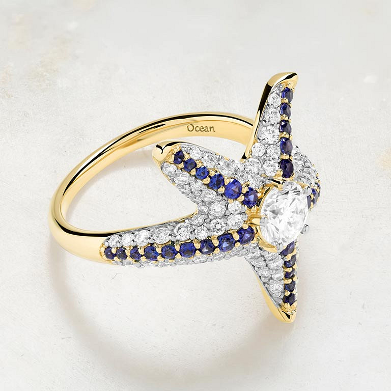 14kt Gold Lab Sapphire and Diamond Star Ring