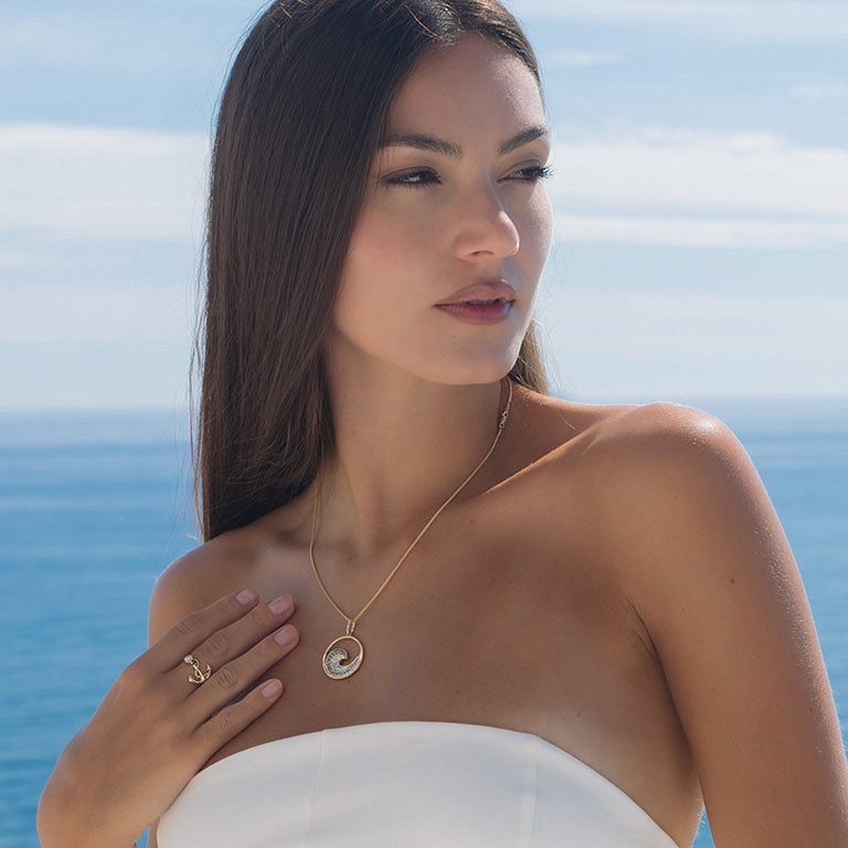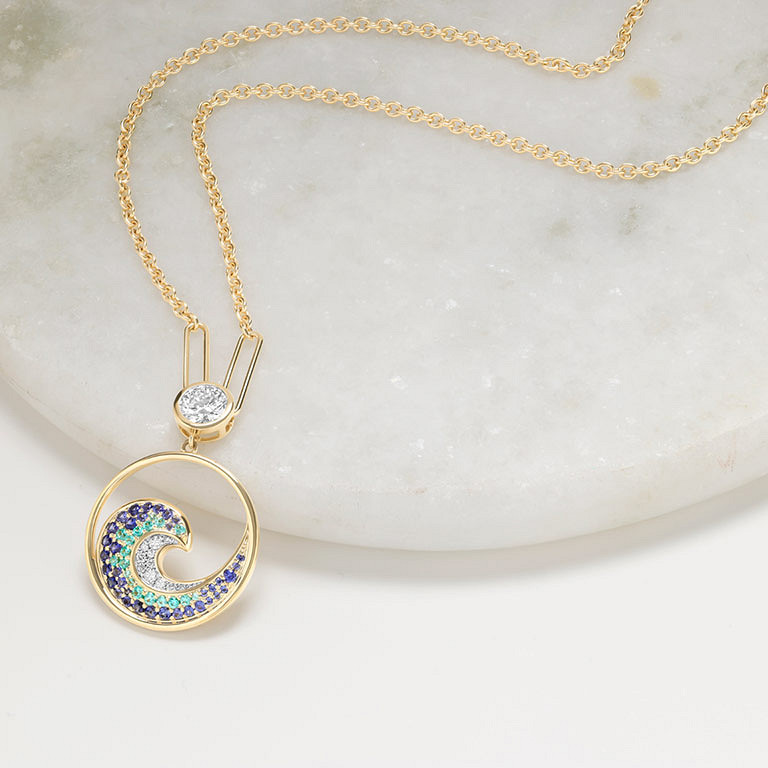 14kt Gold Lab Sapphire and Diamond Wave Necklace
