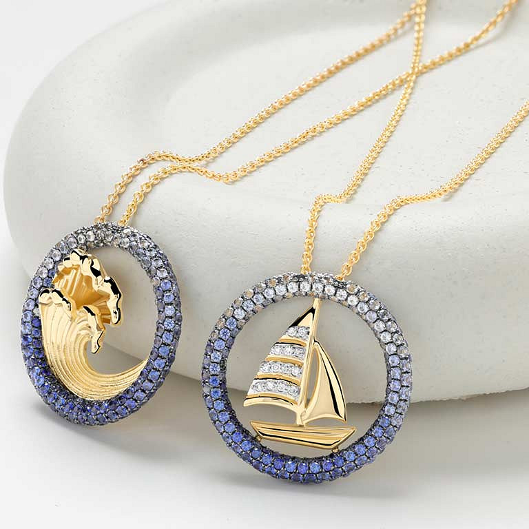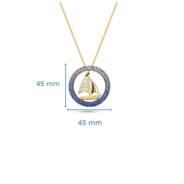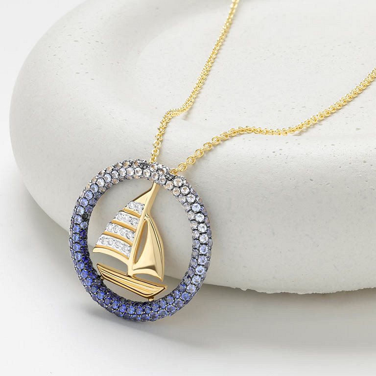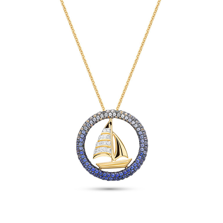 14kt Gold Lab Sapphire Diamond Sail Boat Necklace