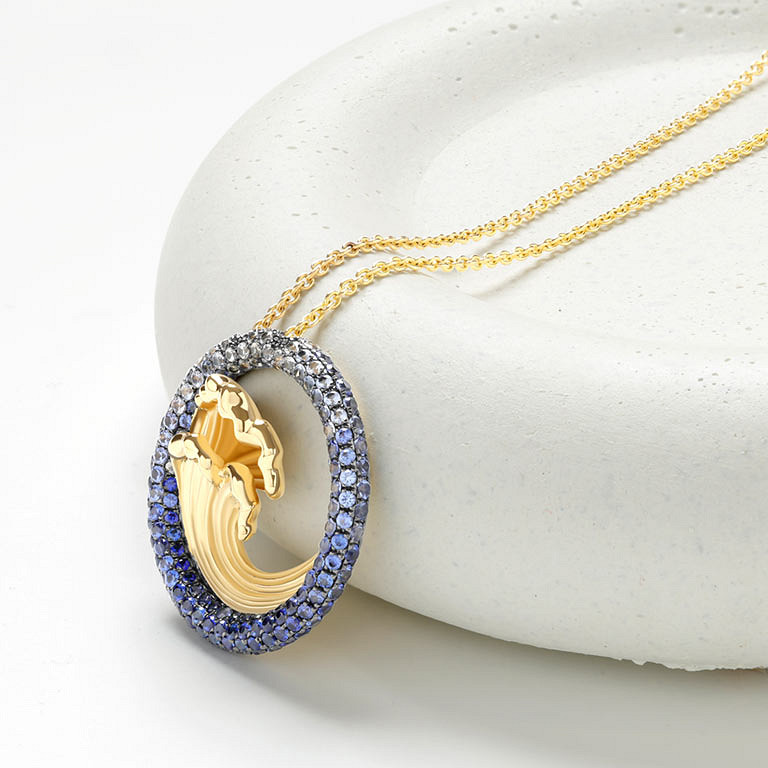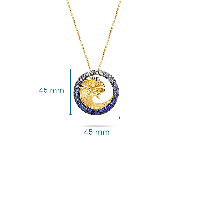 14kt Gold Lab Sapphire Diamond Wave Necklace