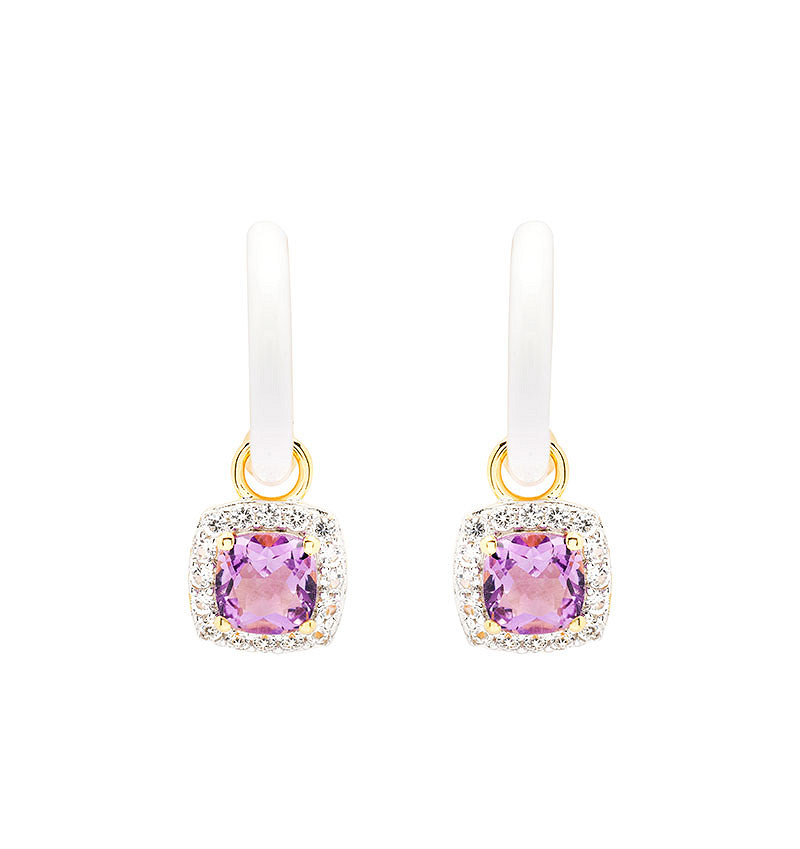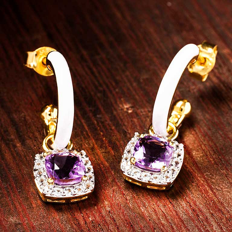 14kt Gold Vermeil Amythest and White Enamel Drop Earrings