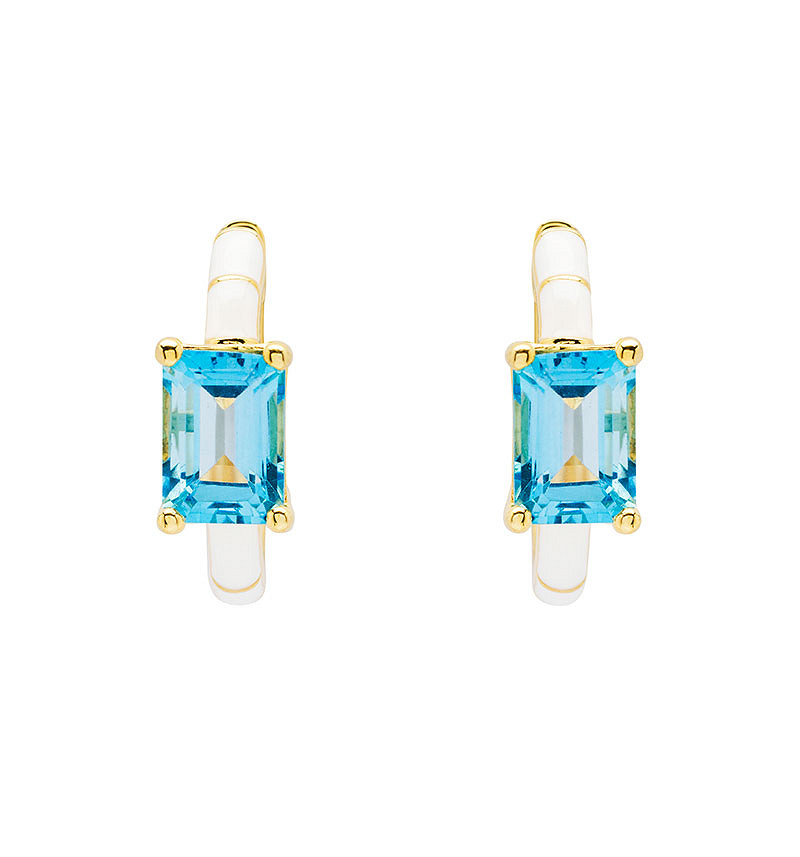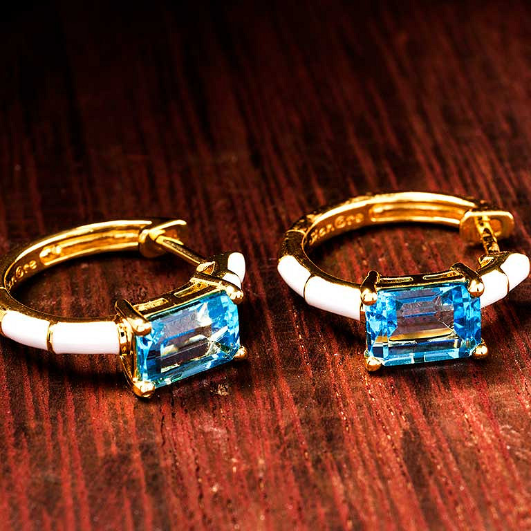 14kt Gold Vermeil Blue Topaz and White Enamel Earrings