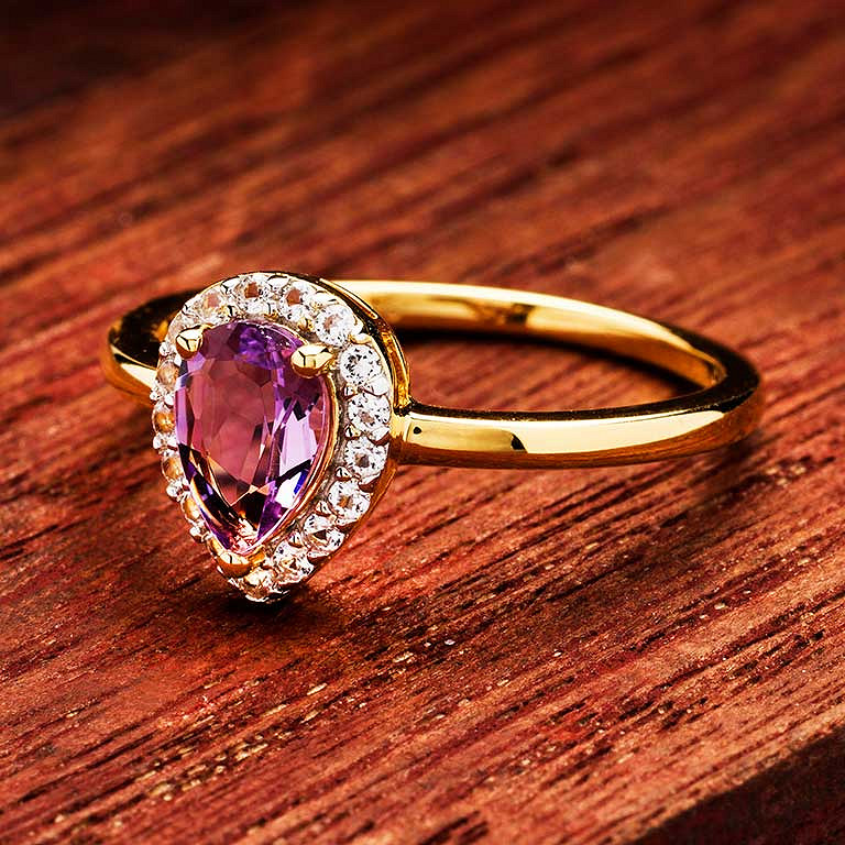 14kt Gold Vermeil Genuine Amythest Halo Ring