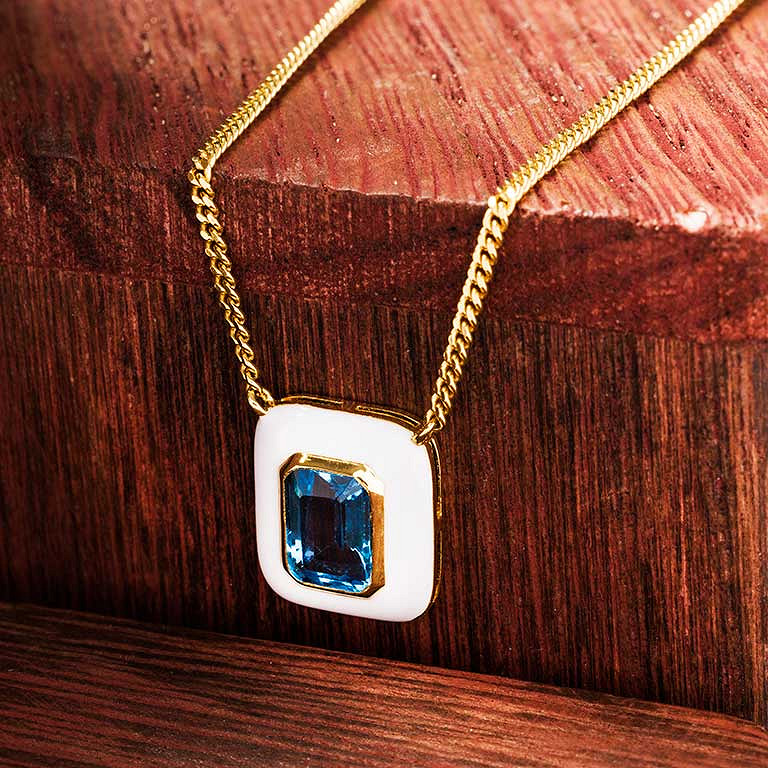 14kt Gold Vermeil Genuine Blue Topaz White Enamel Necklace