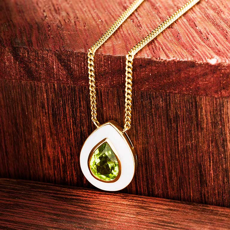 14kt Gold Vermeil Genuine Peridot and White Enamel Necklace