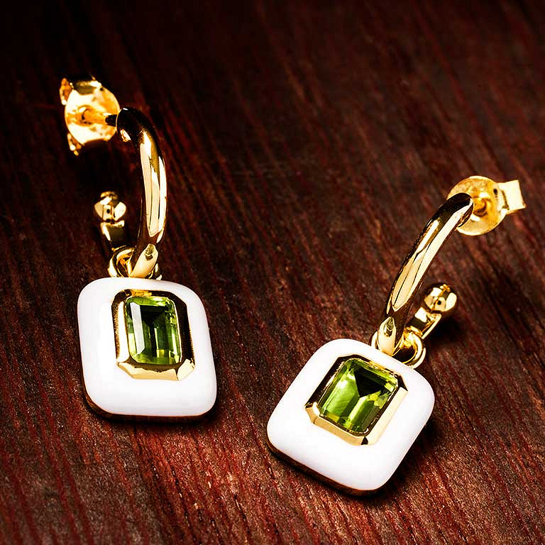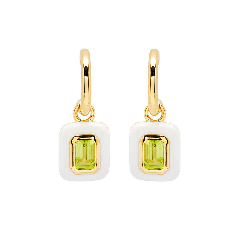 14kt Gold Vermeil Peridot and White Enamel Drop Earrings