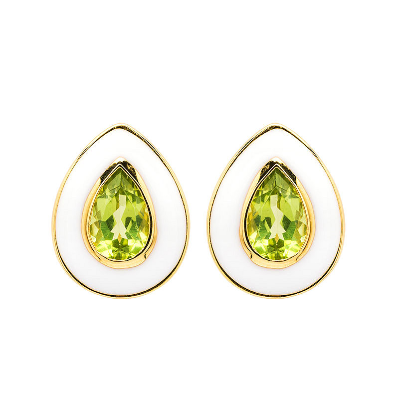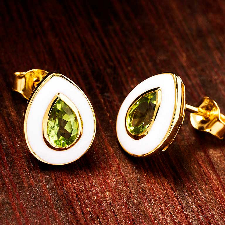 14kt Gold Vermeil Peridot and White Enamel stud Earrings