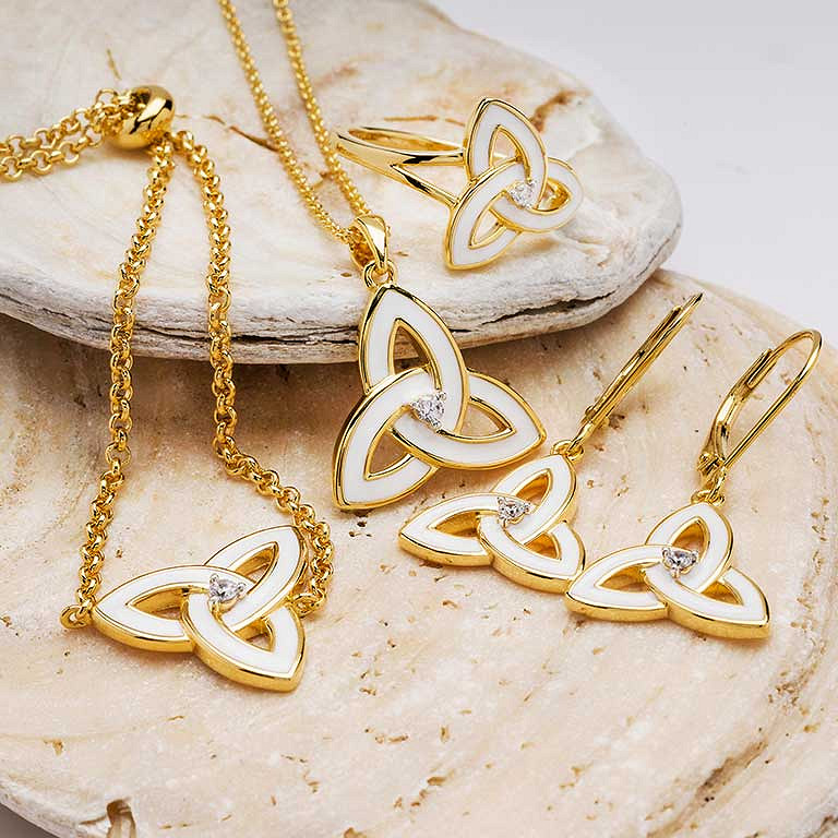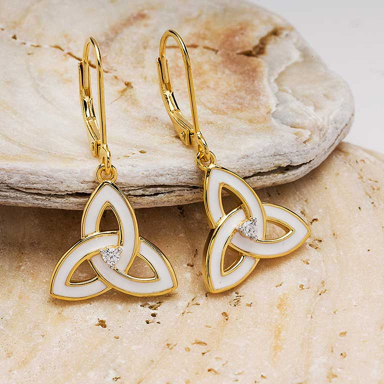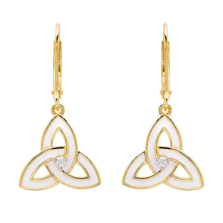 14KT Gold Vermeil White Enamel Trinity drop Earrings