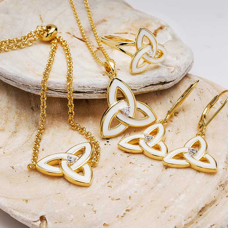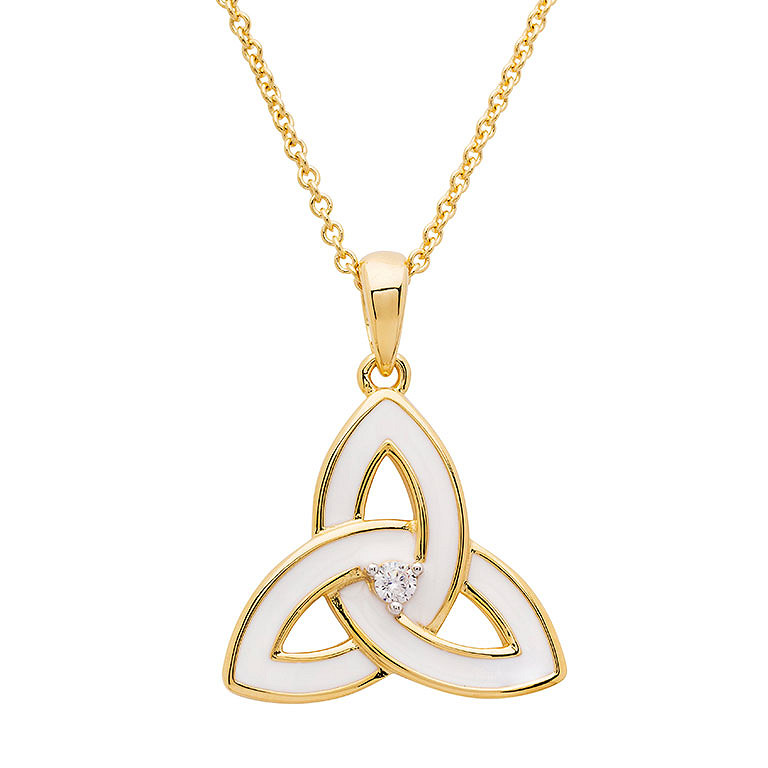 14KT Gold Vermeil white Enamel Trinity Pendant