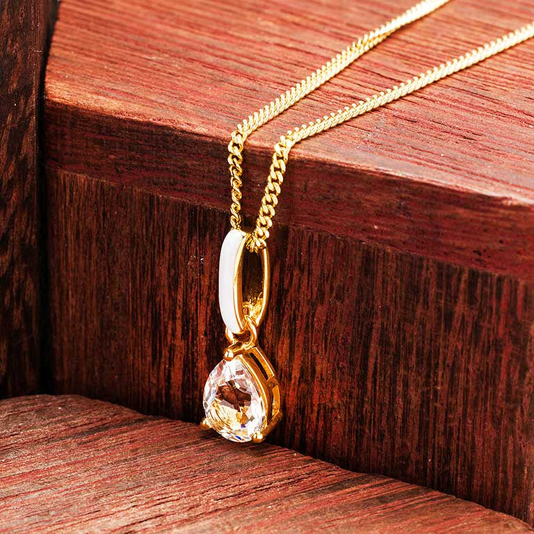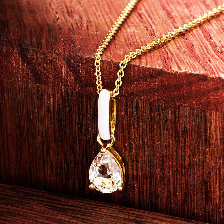 14kt Gold Vermeil White Topaz and White Enamel Necklace