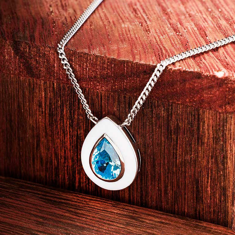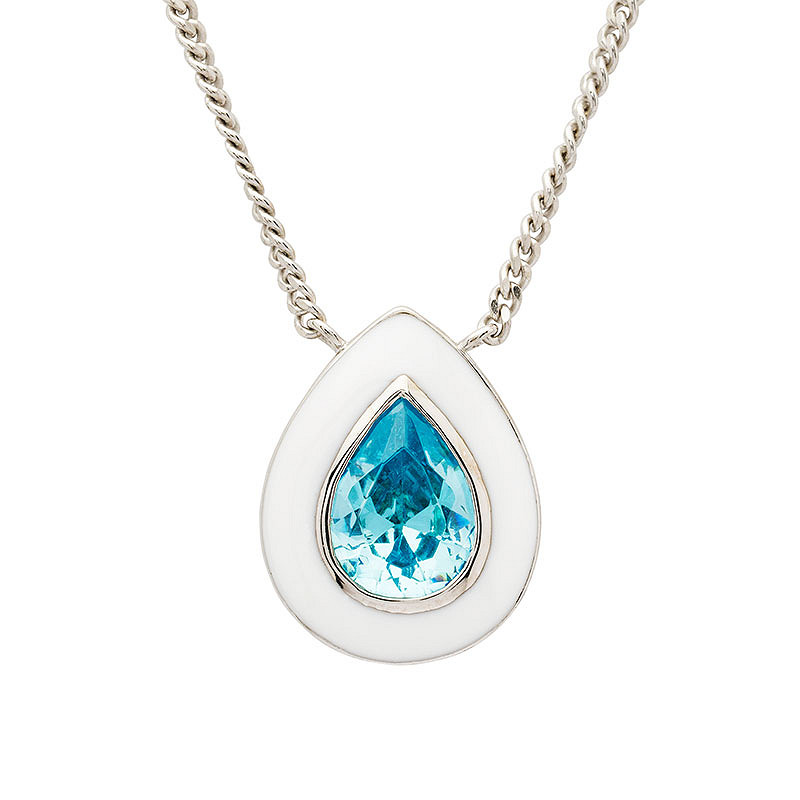 Sterling Silver Aqua CZ with white Enamel Necklace