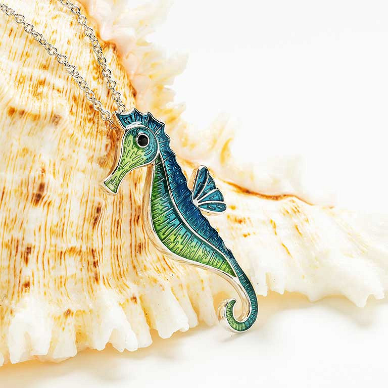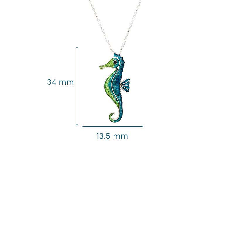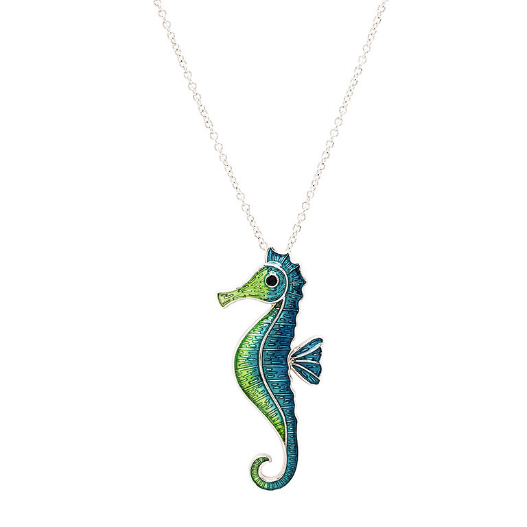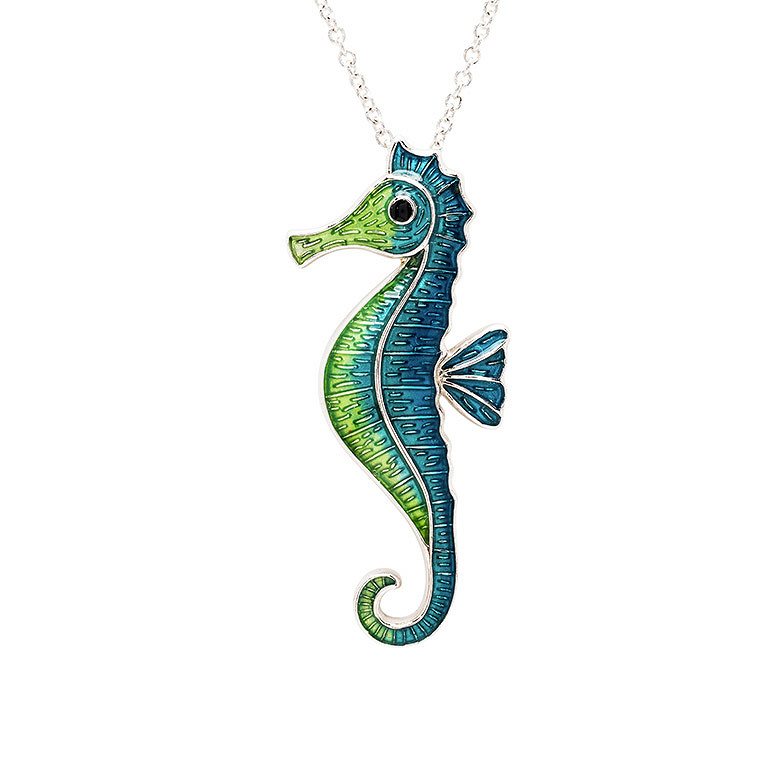Sterling Silver Blue Enamel and CZ Seahorse Necklace