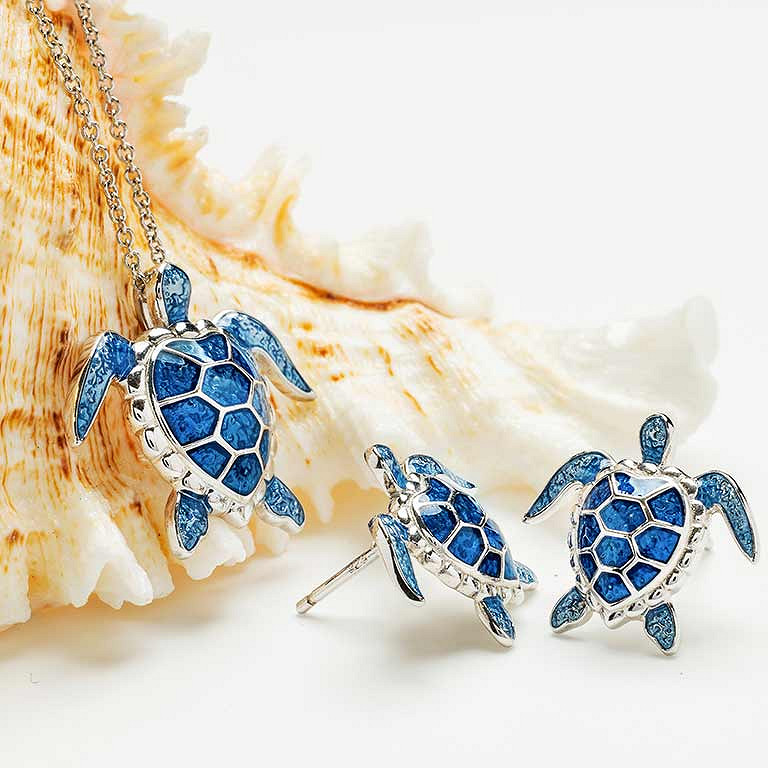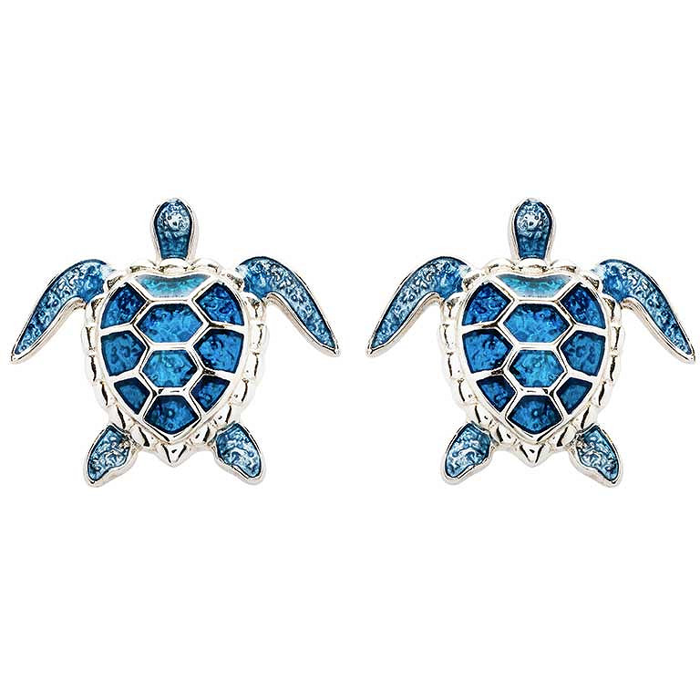 Sterling Silver Blue Enamel Turtle Stud Earrings