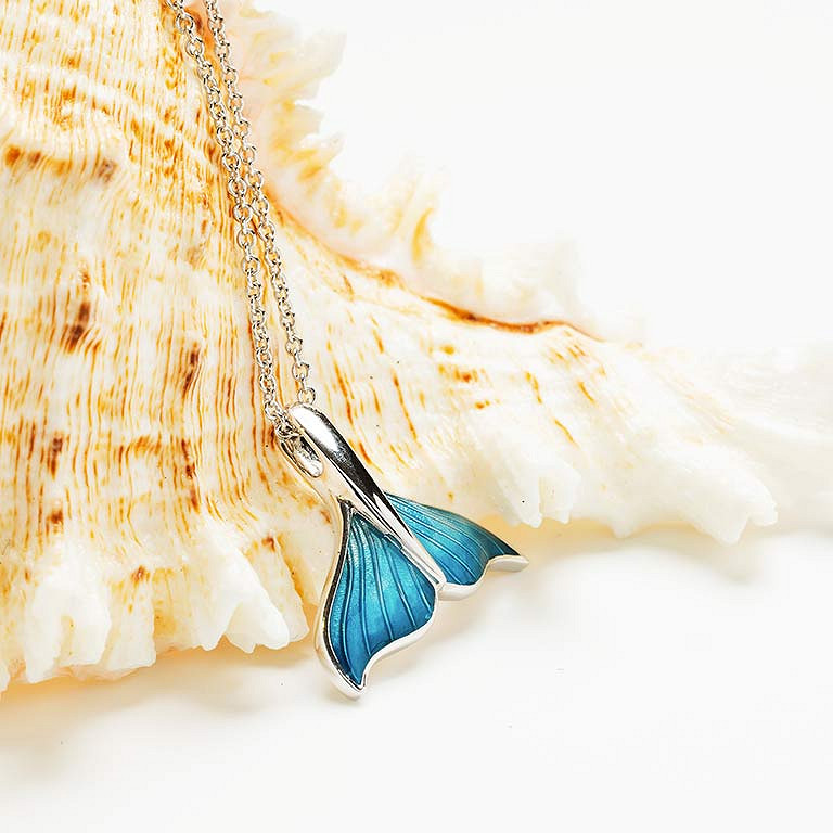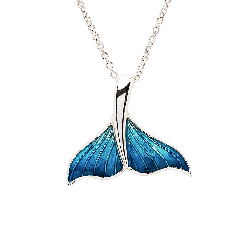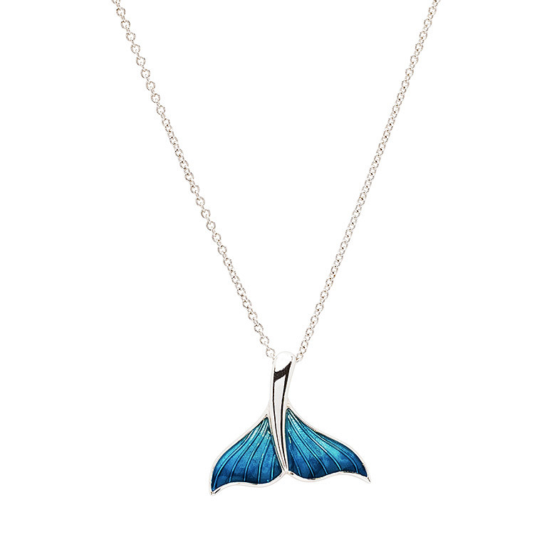 Sterling Silver Blue Enamel Whale Tail Necklace