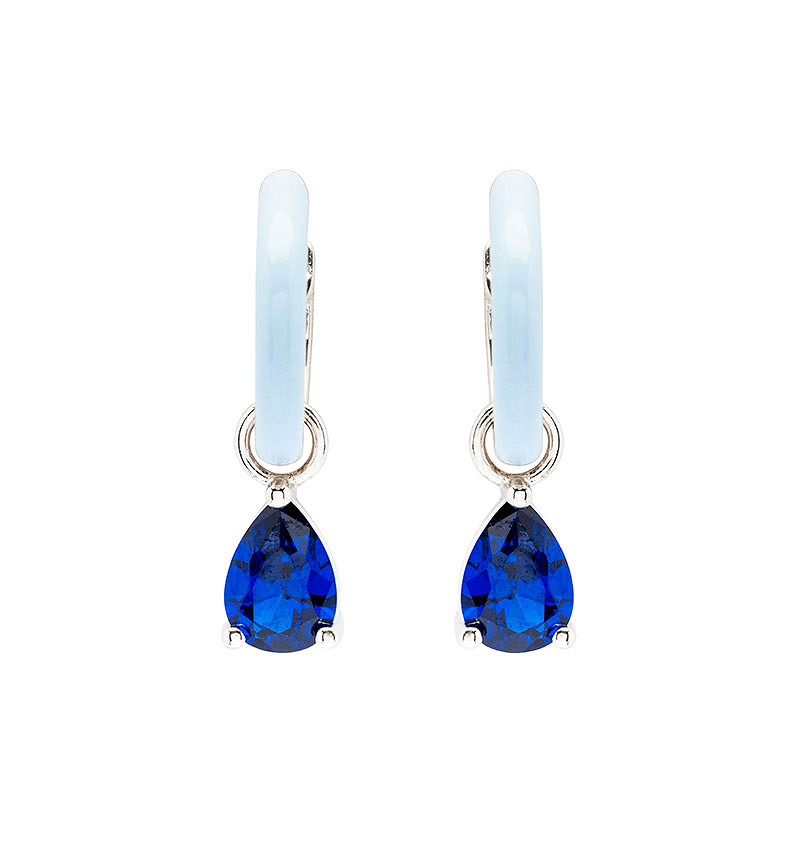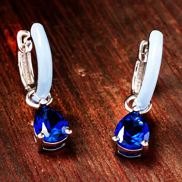 Sterling Silver Sapphire CZ with Blue Enamel Drop Earrings