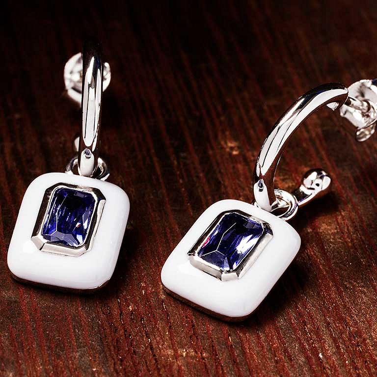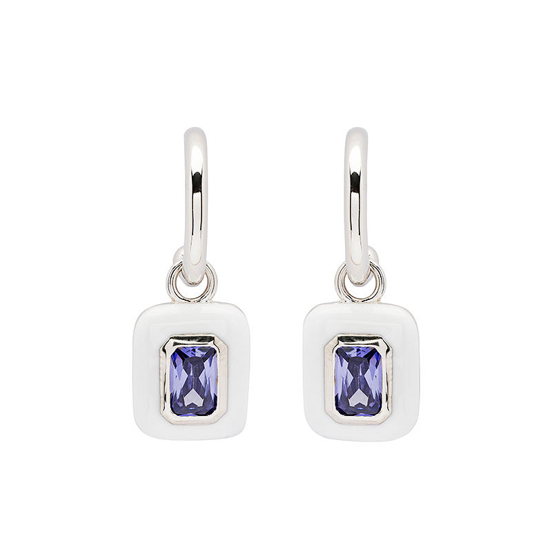 Sterling Silver Tanzanite CZ with white Enamel Drop Earrings