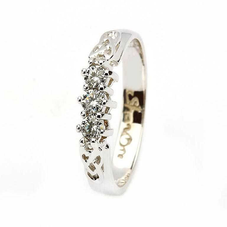 Celtic diamond ring 14k white gold 3 stone 25ct