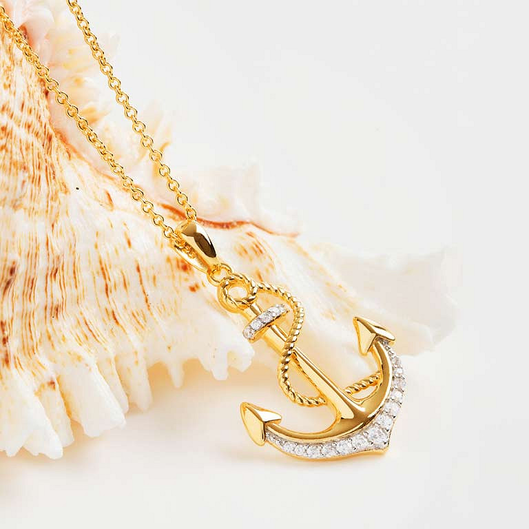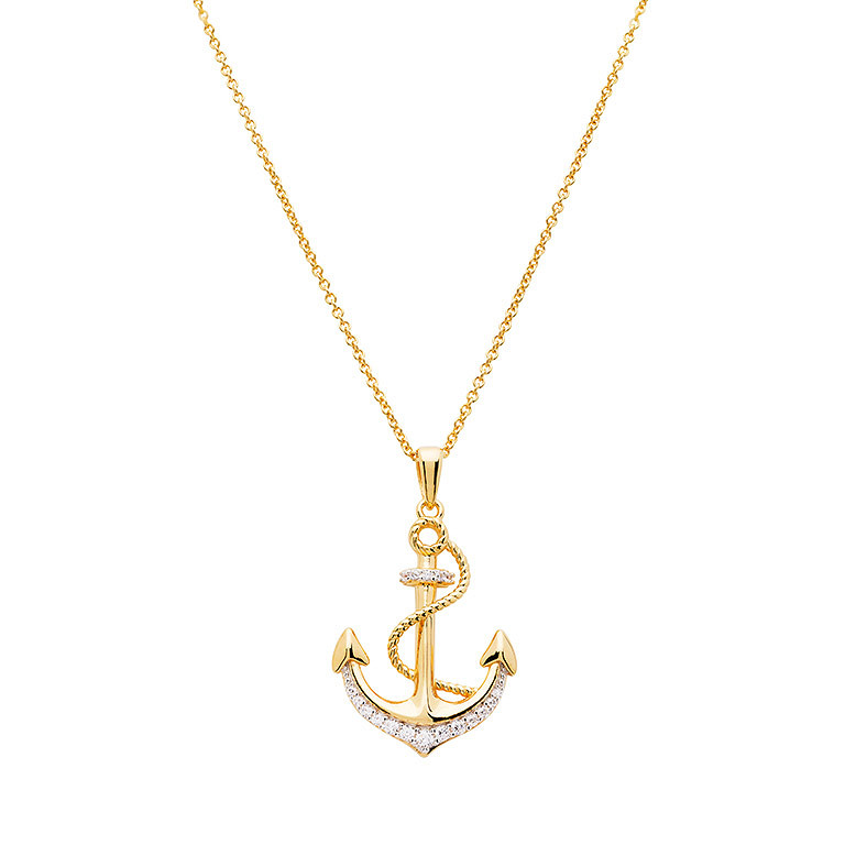 14kt Gold Vermeil CZ Anchor Necklace