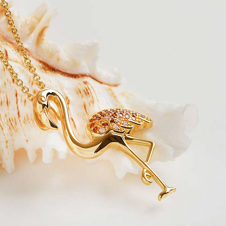 14kt Gold Vermeil CZ Flamingo Necklace