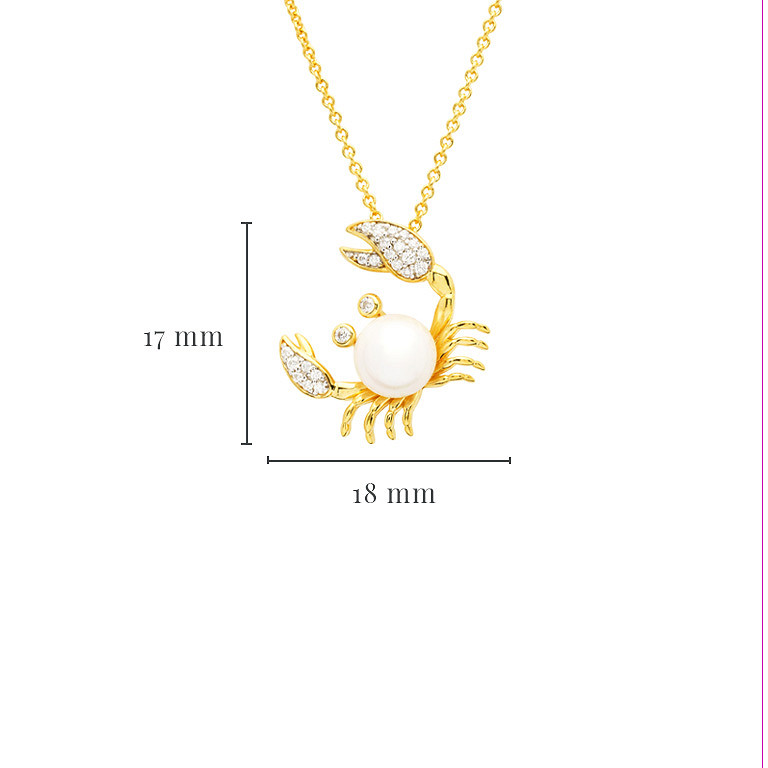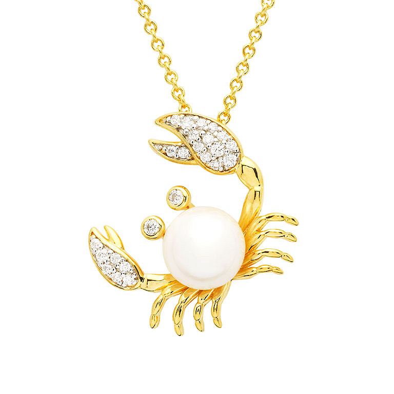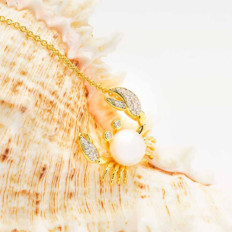 14KT Gold Vermeil CZ / Pearl Crab Necklace