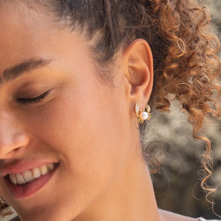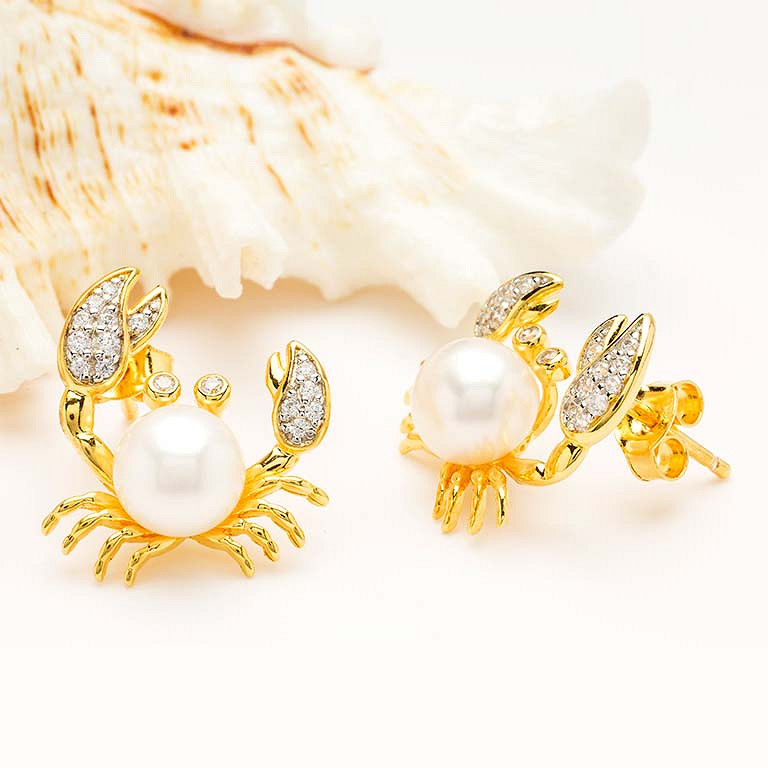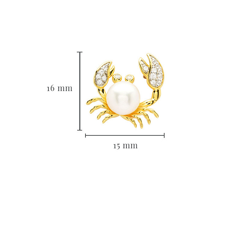 14KT Gold Vermeil CZ / Pearl Crab Stud Earrings