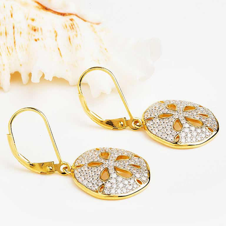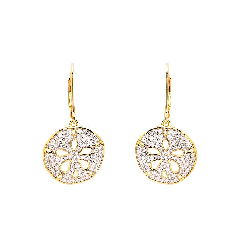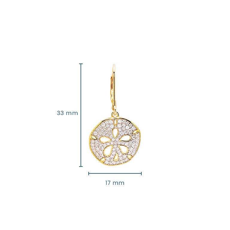 14kt Gold Vermeil CZ Sand Dollar Drop Earrings