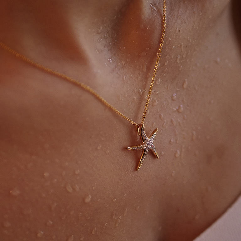 14kt Gold Vermeil CZ Starfish Necklace