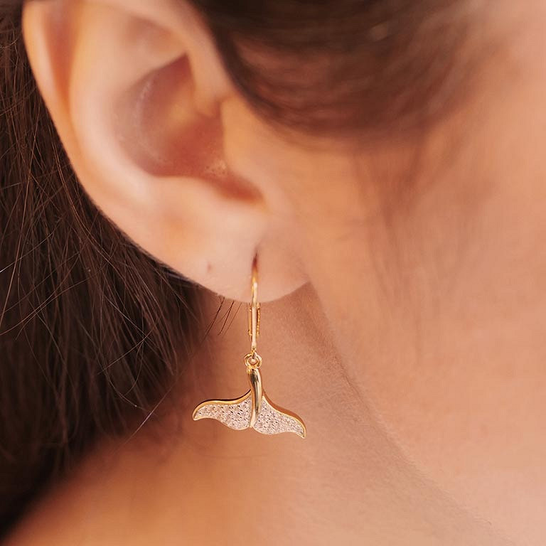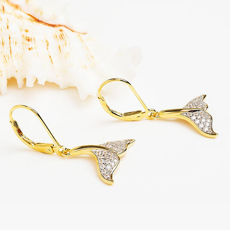14kt Gold Vermeil CZ Whale Tail Drop Earrings