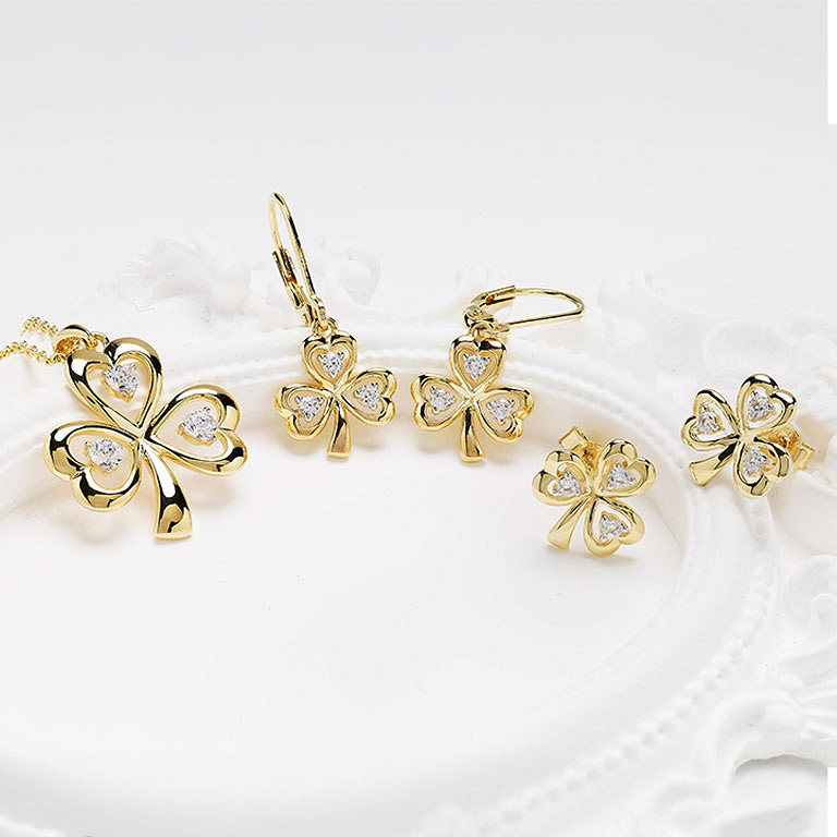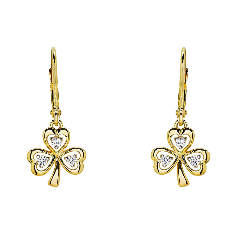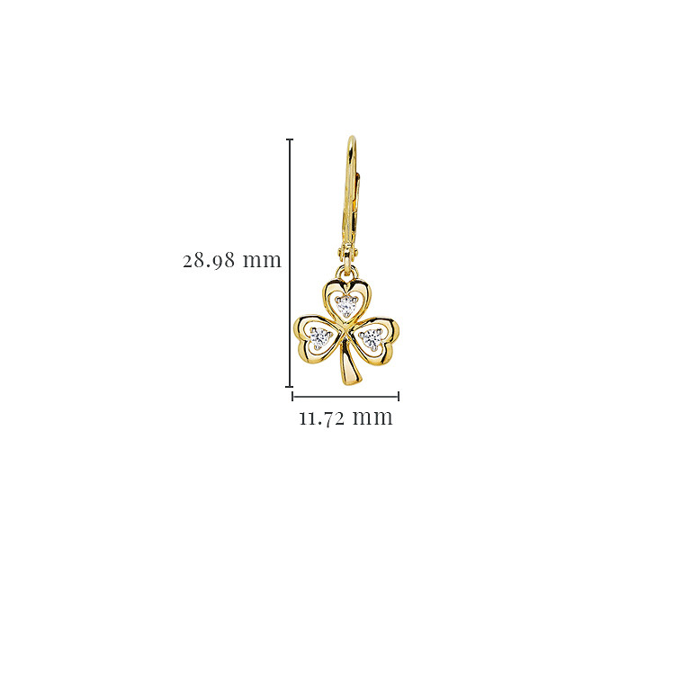 14kt Gold Vermeil Drop Shamrock white Sapphire Earrings