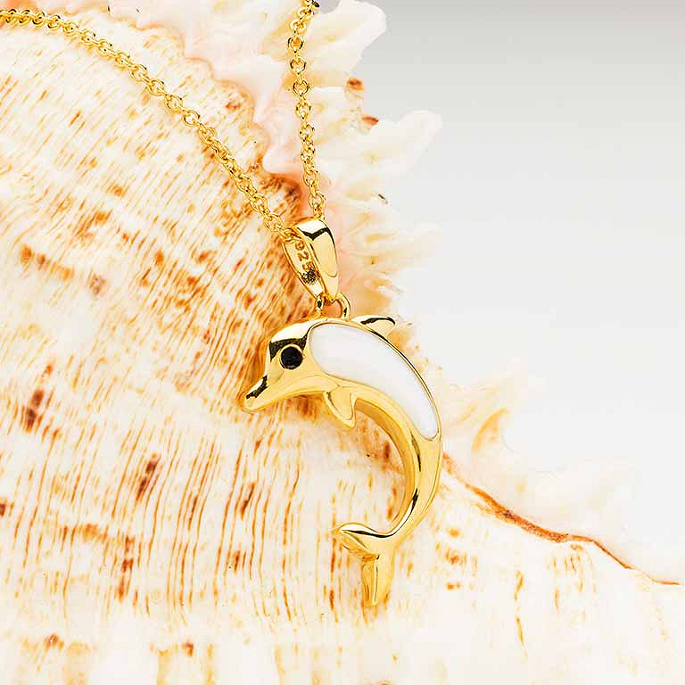 14KT Gold Vermeil MOP Dolphin Necklace
