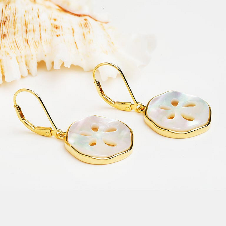 14kt Gold Vermeil MOP Sand Dollar Drop Earrings