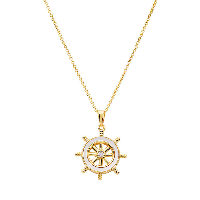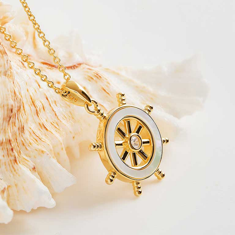 14kt Gold Vermeil MOP Ships Wheel Necklace