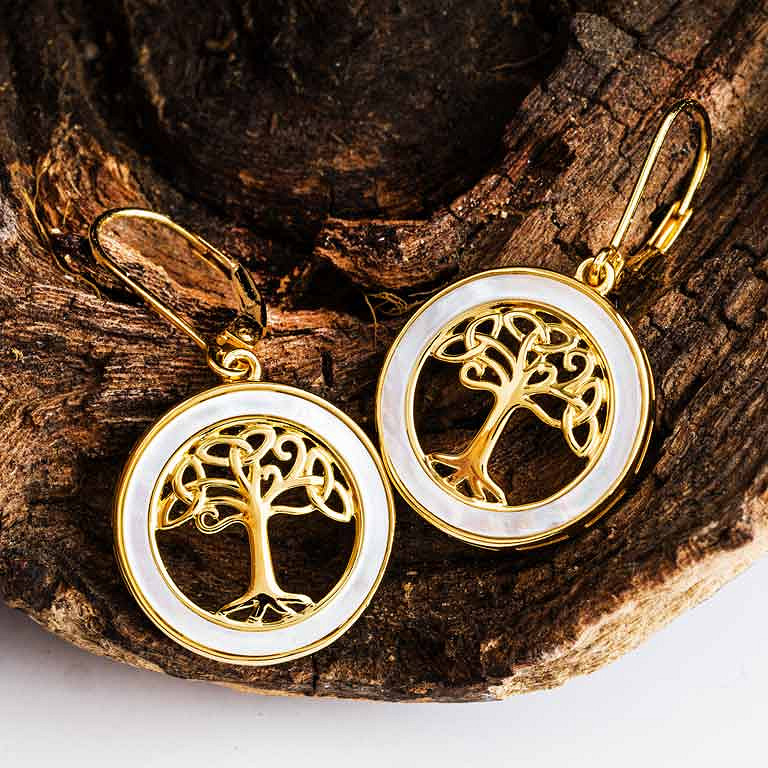 14kt Gold Vermeil MOP Tree of Life Earrings