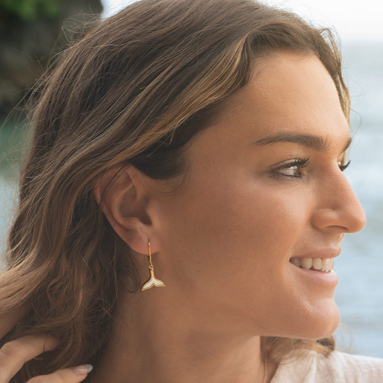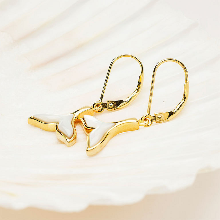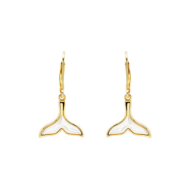 14KT Gold Vermeil MOP Whale Tail Drop Earrings