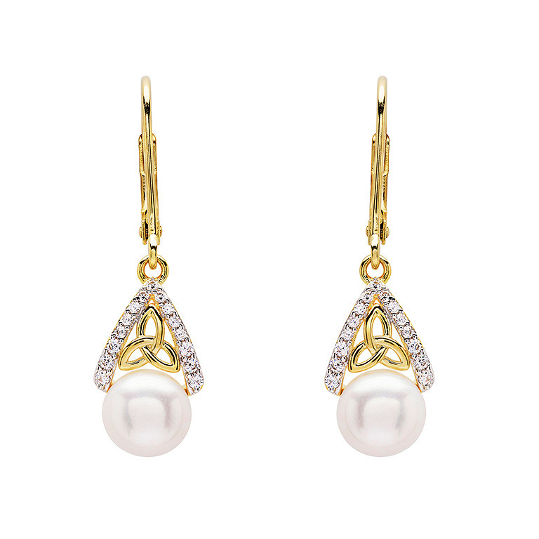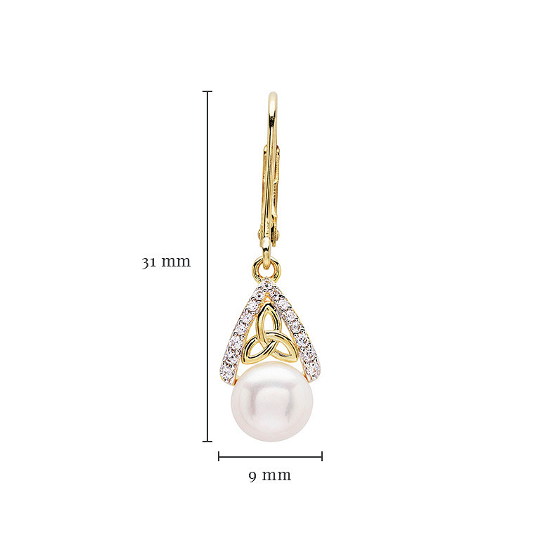 14KT Gold Vermeil Pearl/CZ Trinity Knot Drop Earrings