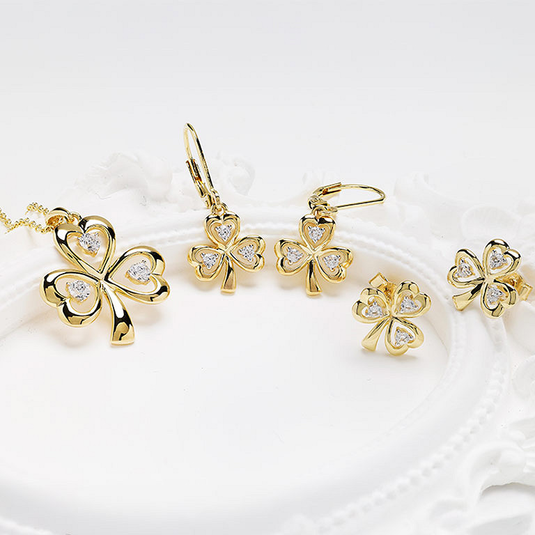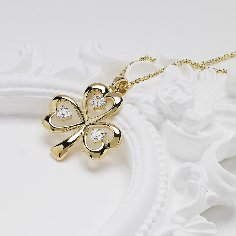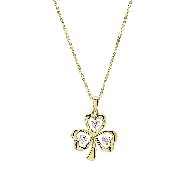 14kt Gold Vermeil Shamrock white Sapphire Necklace