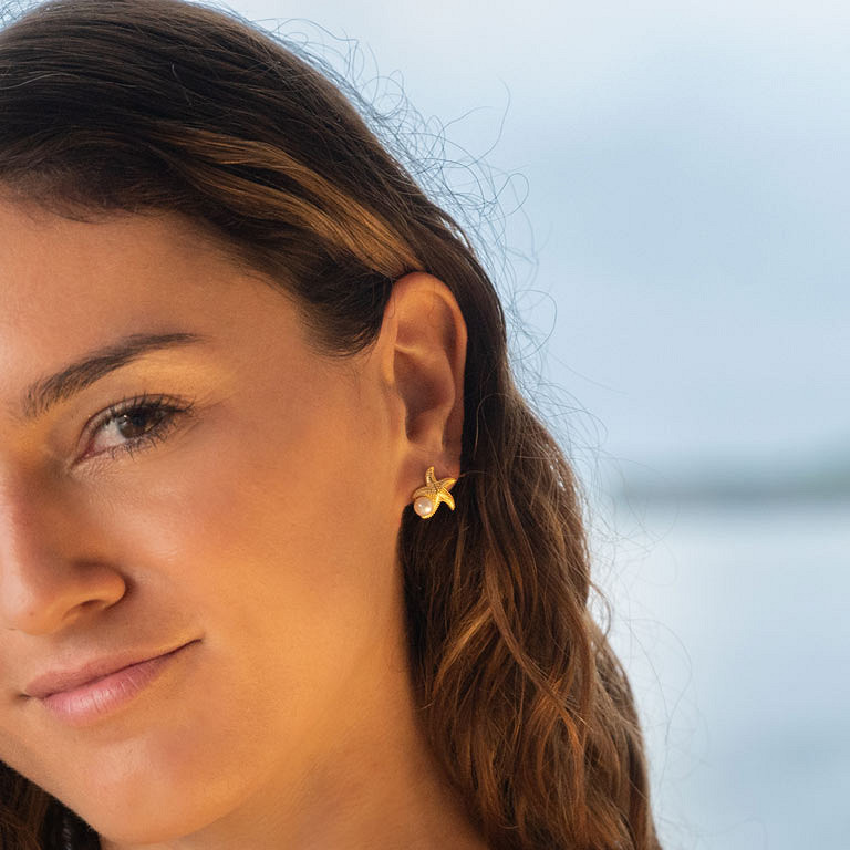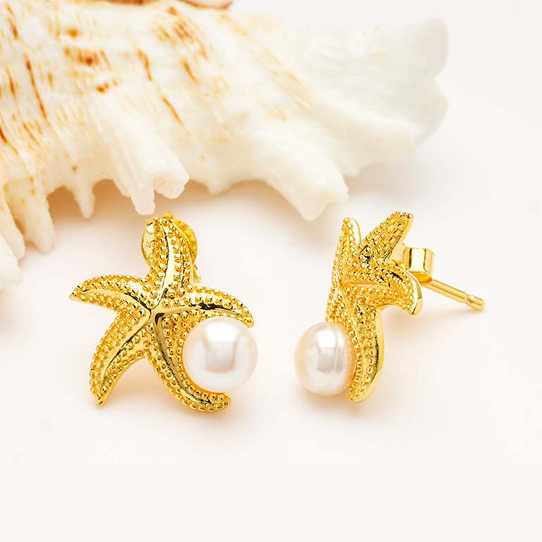14KT Gold Vermeil Starfish and Pearl Stud Earrings