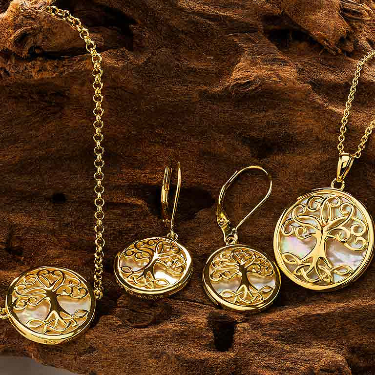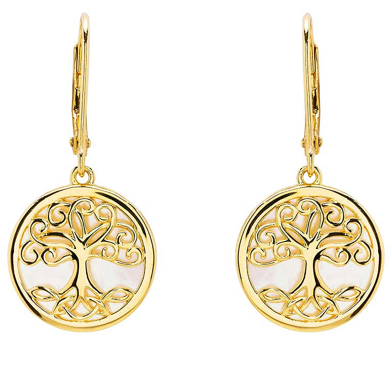14kt Gold Vermeil Tree of Life MOP Earrings